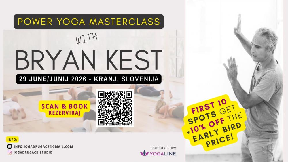 Ponedeljek, 29.6.2026. bo Barbara Laginja iz Studio Joga Drugače, ki je specializiran studio za power jogo z zvočno terapijo, k nam pripeljala “očeta” Power Yoge, Bryan Kest-a!